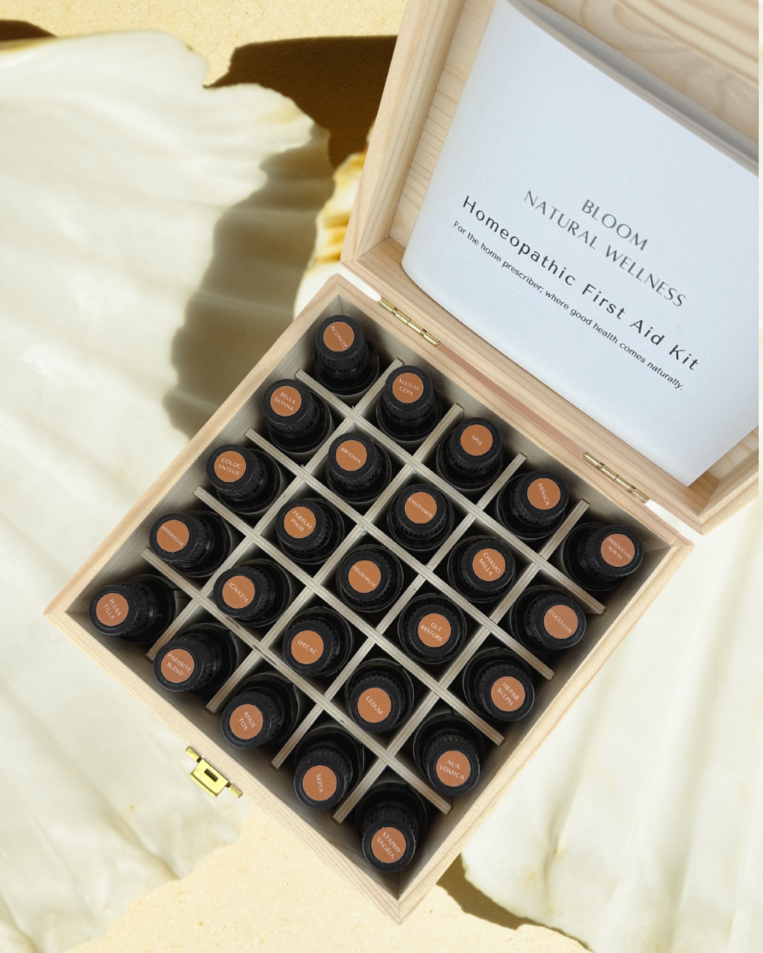- Wooden box for safe and convenient storage of your remedies.